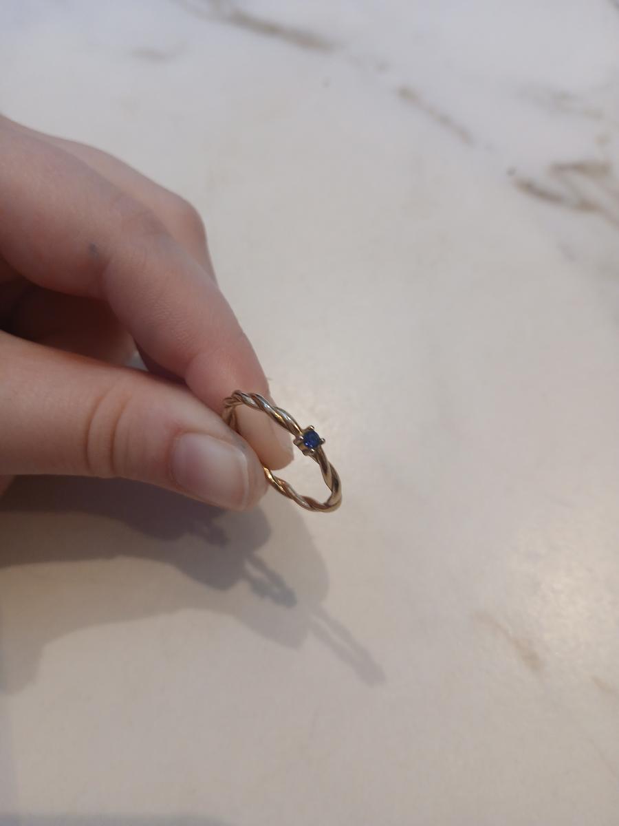 Een ring met een blauw steentje