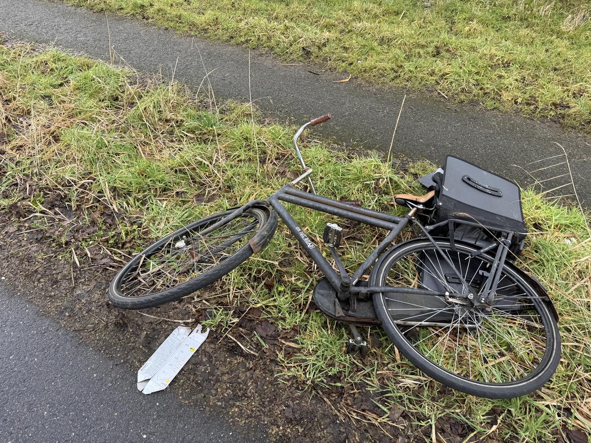 Zwarte fiets met fietstas (on the road)