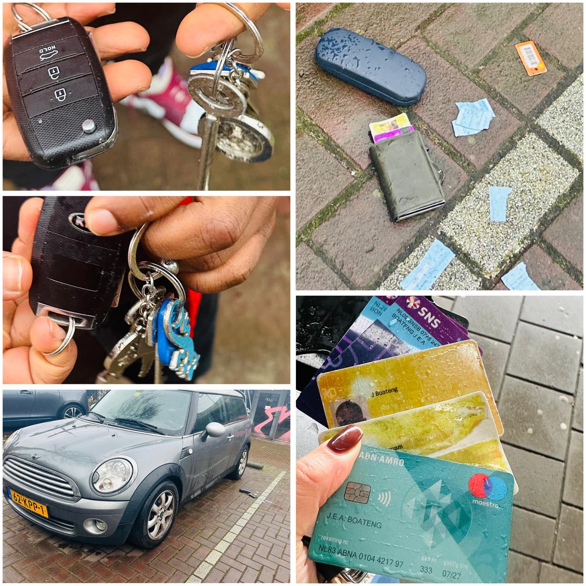 2 keer id,rijbewijs,bankpas,sleutels handtas