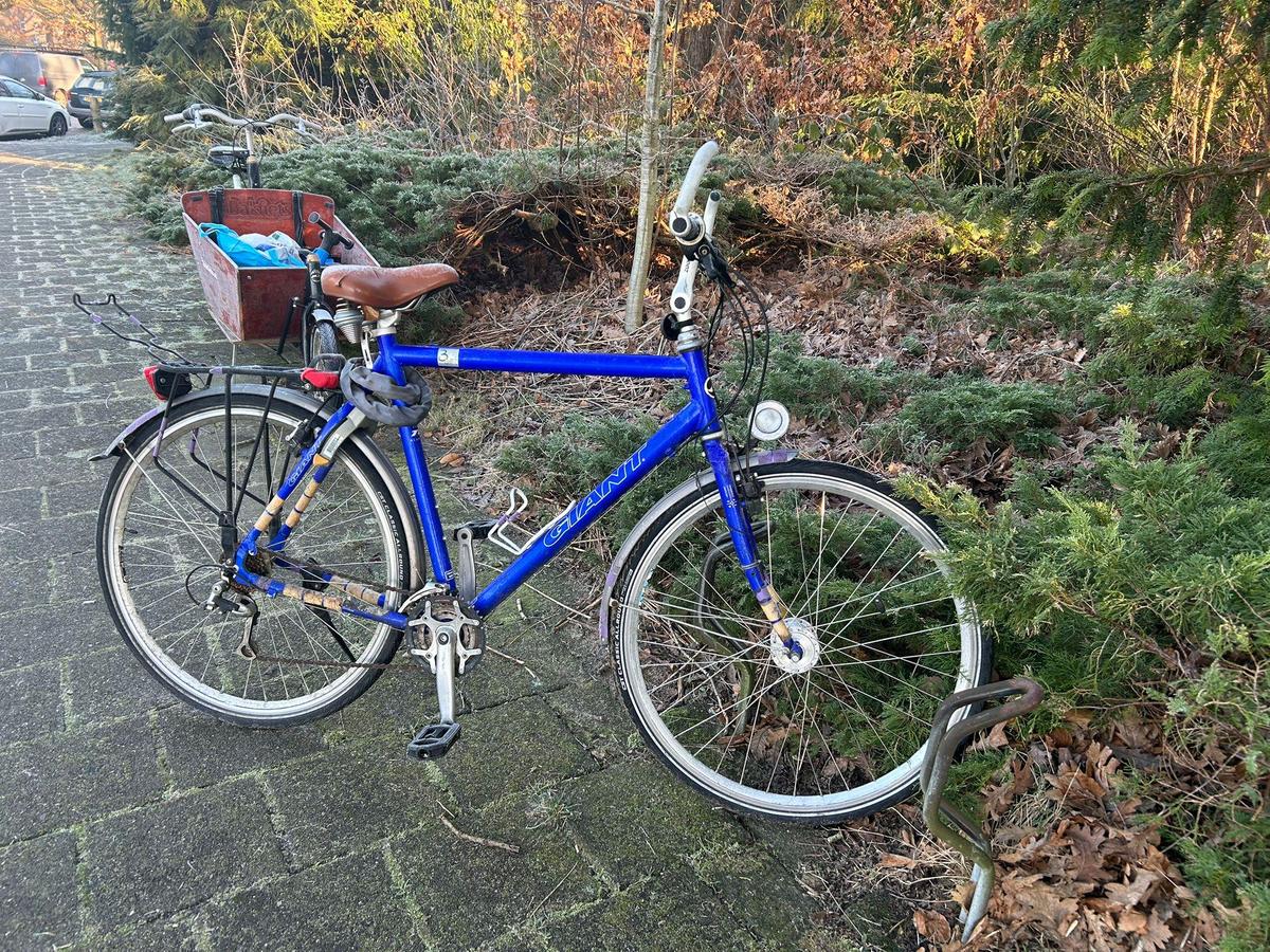 Een blauwe herenfiets