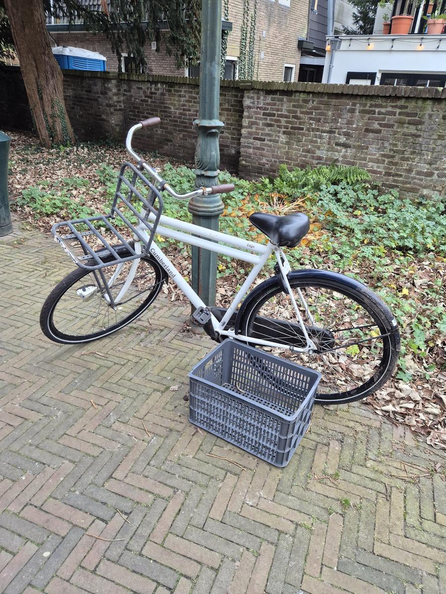 Witte fiets Cumberland met grijze krat