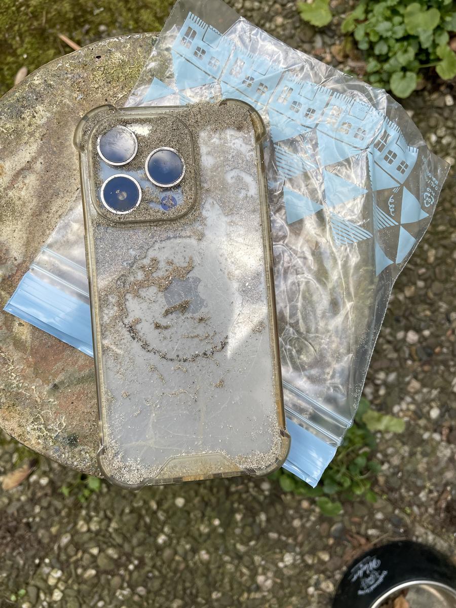 Iphone met zand en zeewater
