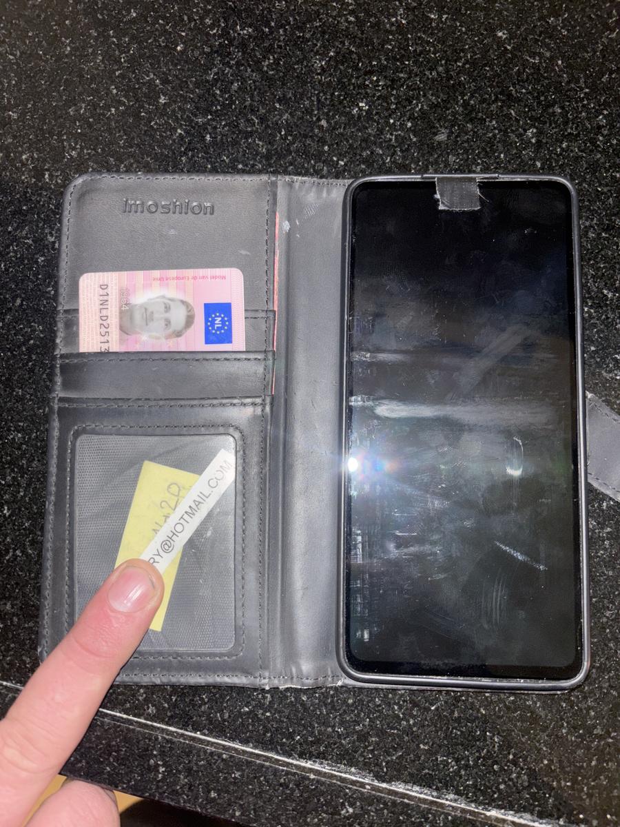 Mobiel met bankpas en rijbewijs