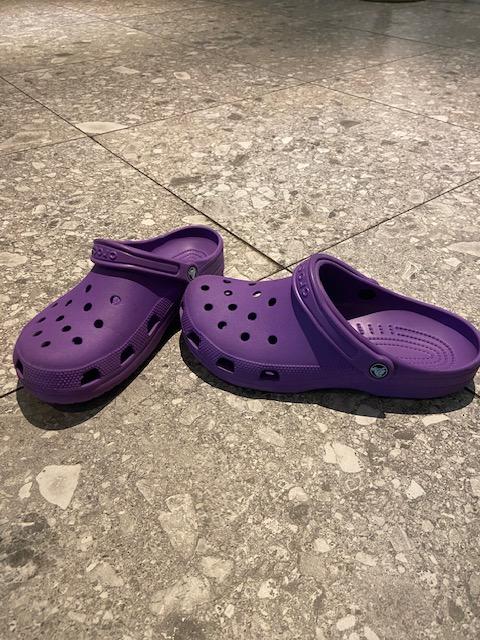 Shoes purple Crocs, gemeldet von Conscious Hotel Museum Square über iLost