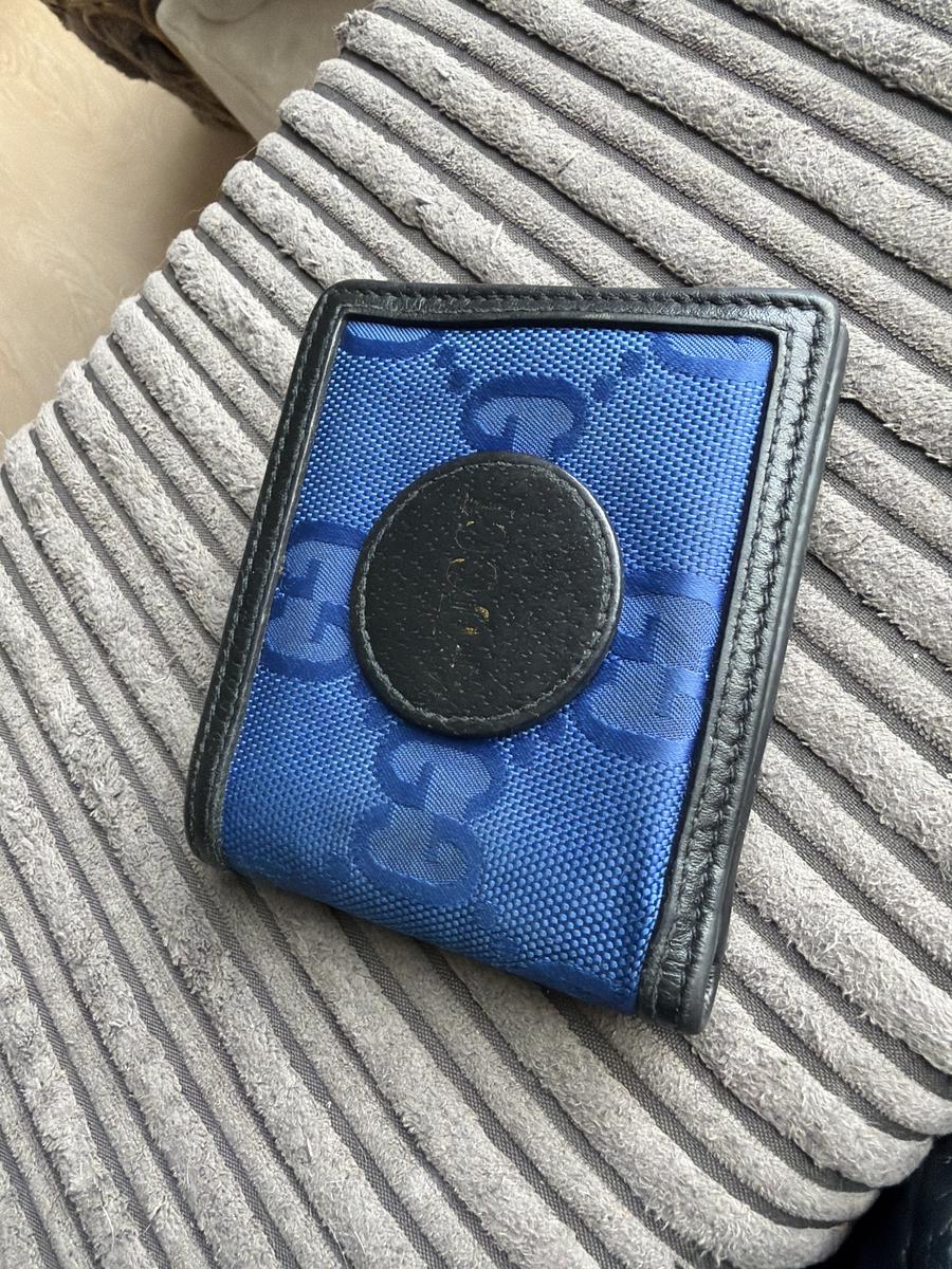 Blauw met zwarte Gucci portemonnee