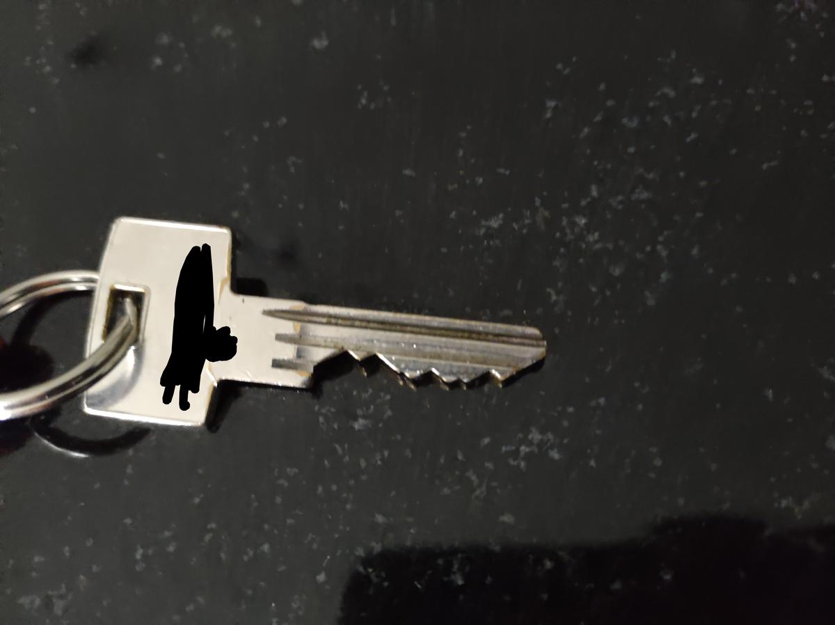 Sleutel met blauw rode sleutelhanger