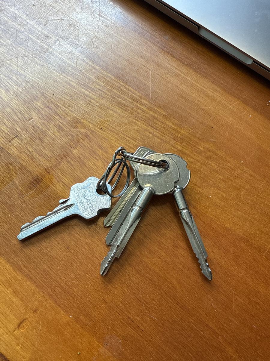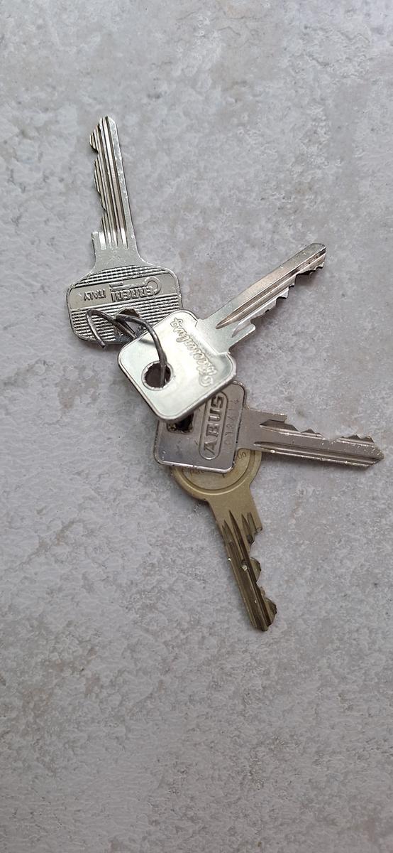 een sleutelbos met 4 sleutels,
