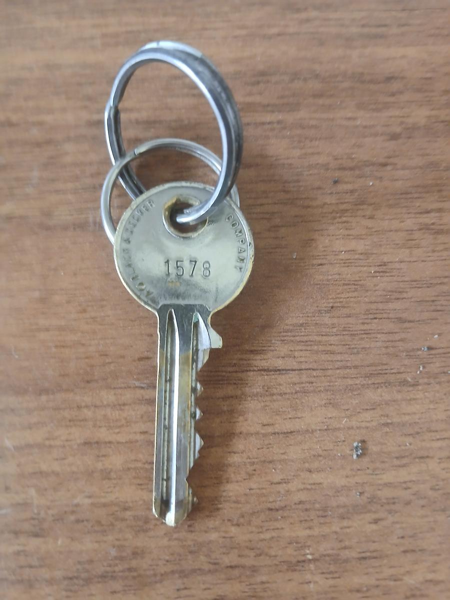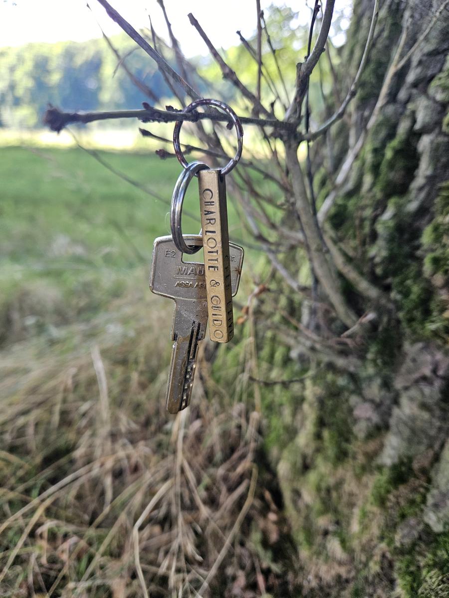 Sleutel met rood labeltje en de naam Corine