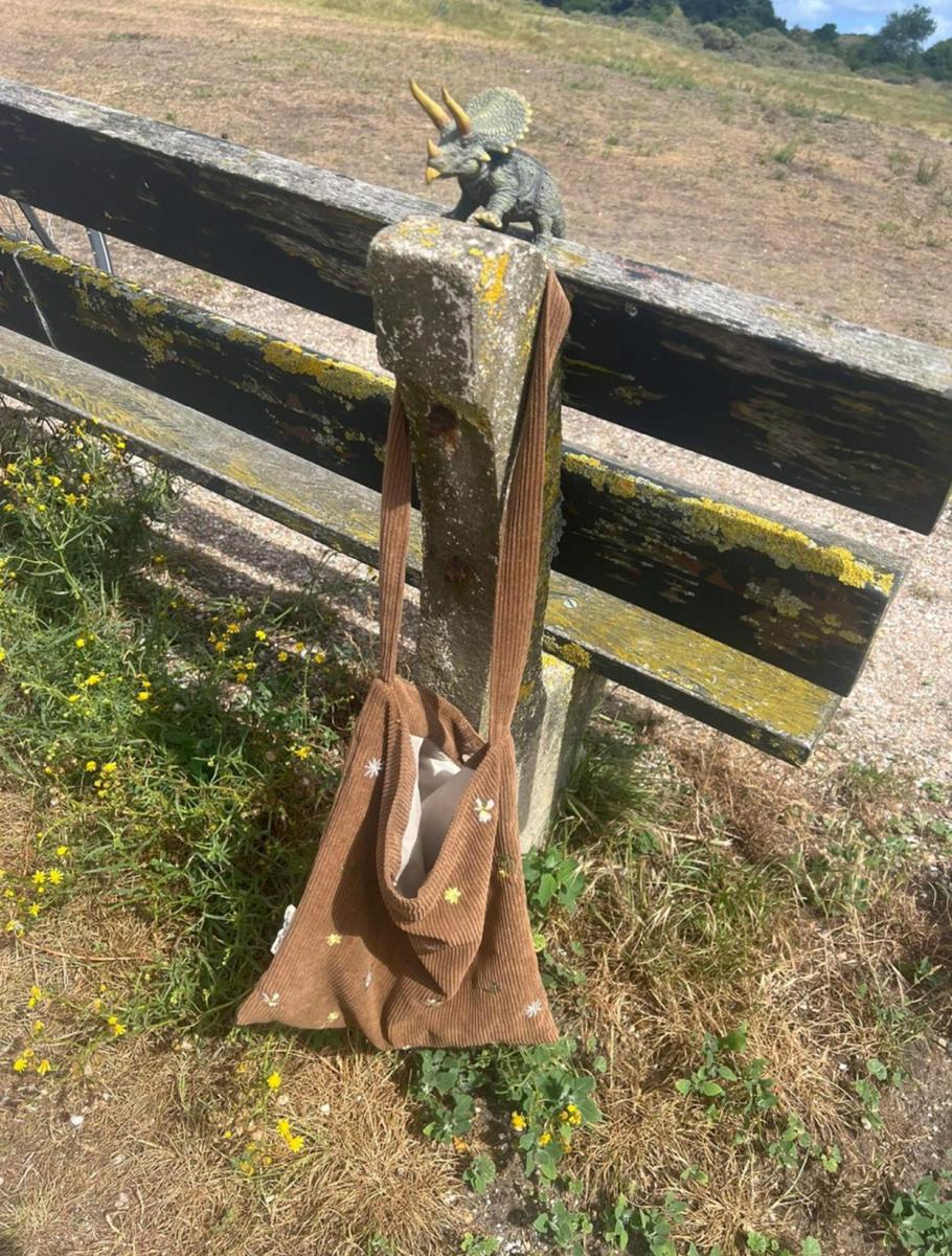 Bruine rugzak met seutels en Dino
