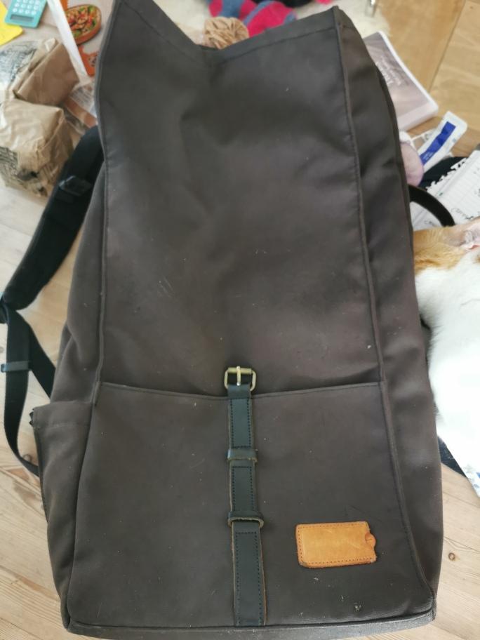 Bruine rugzak met inhoud