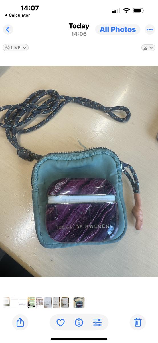 Green mini bag with one airpod and case