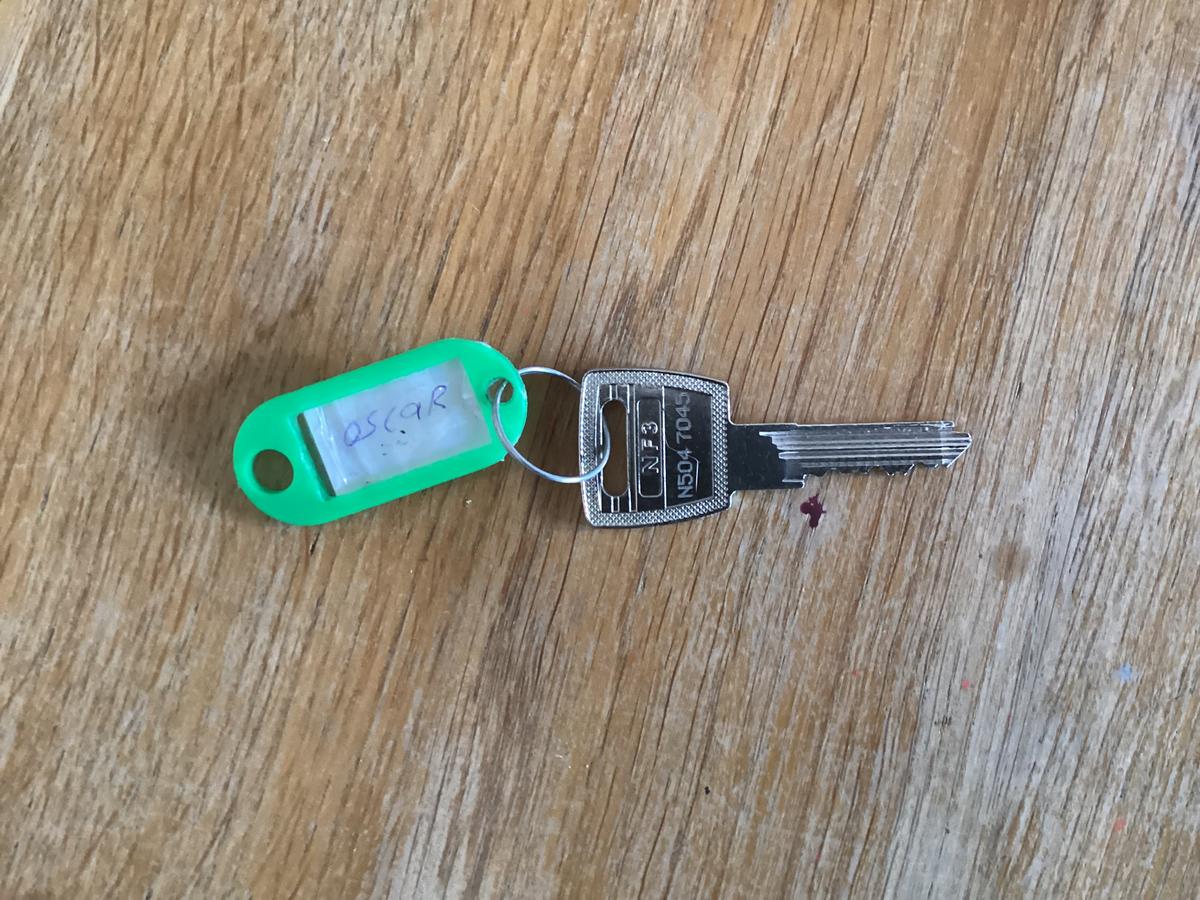 Sleutel met groen label met naam Oscar