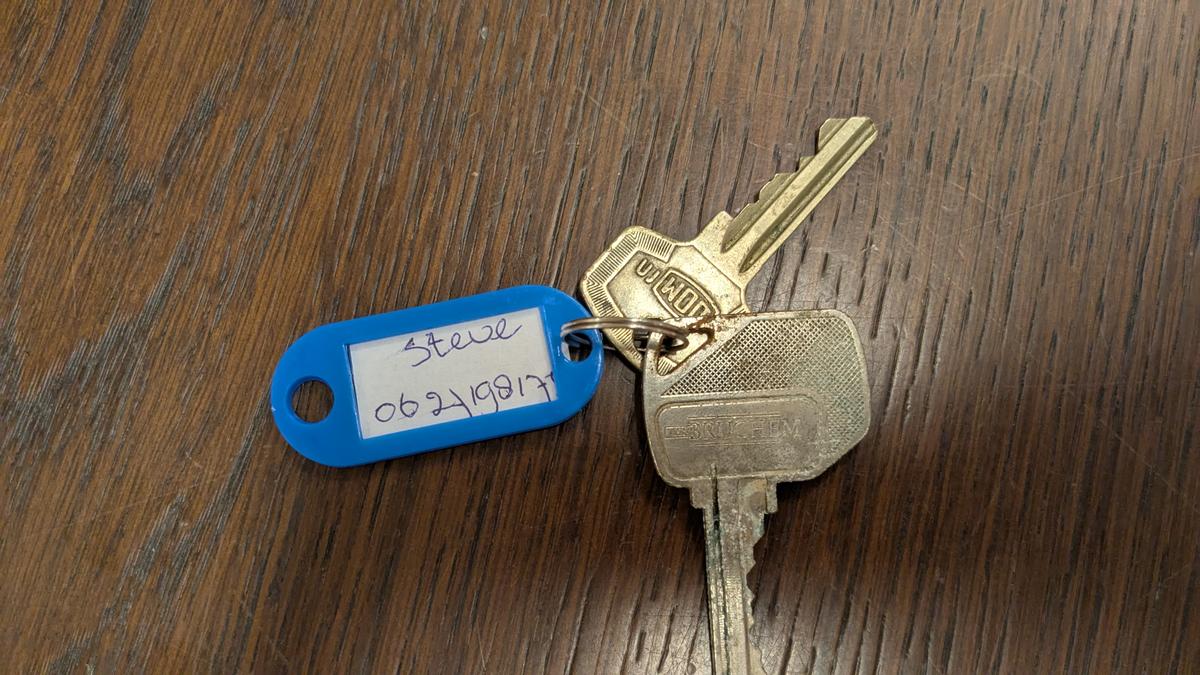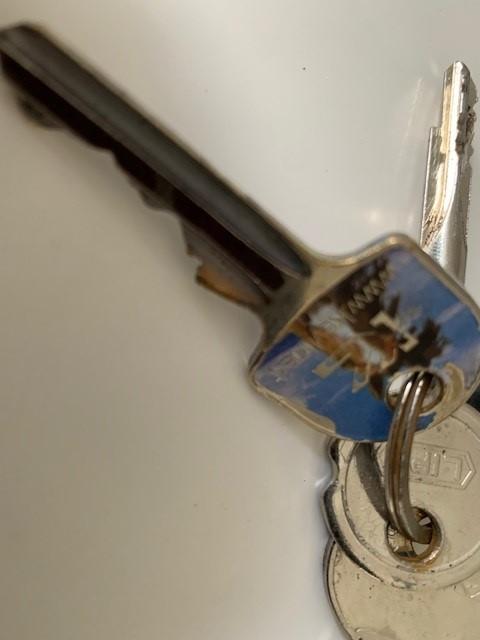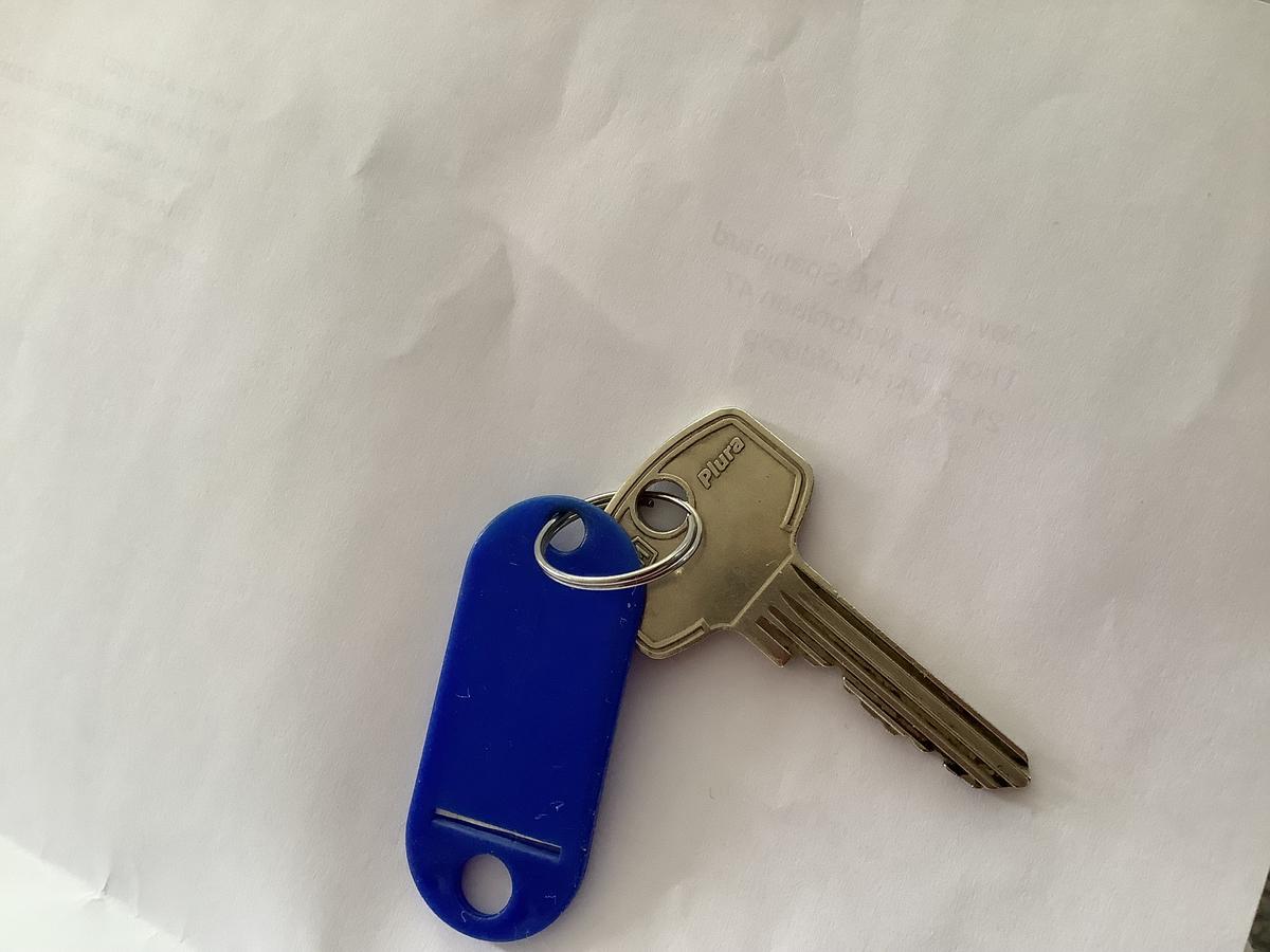 Sleutel met blauwe labeltje
