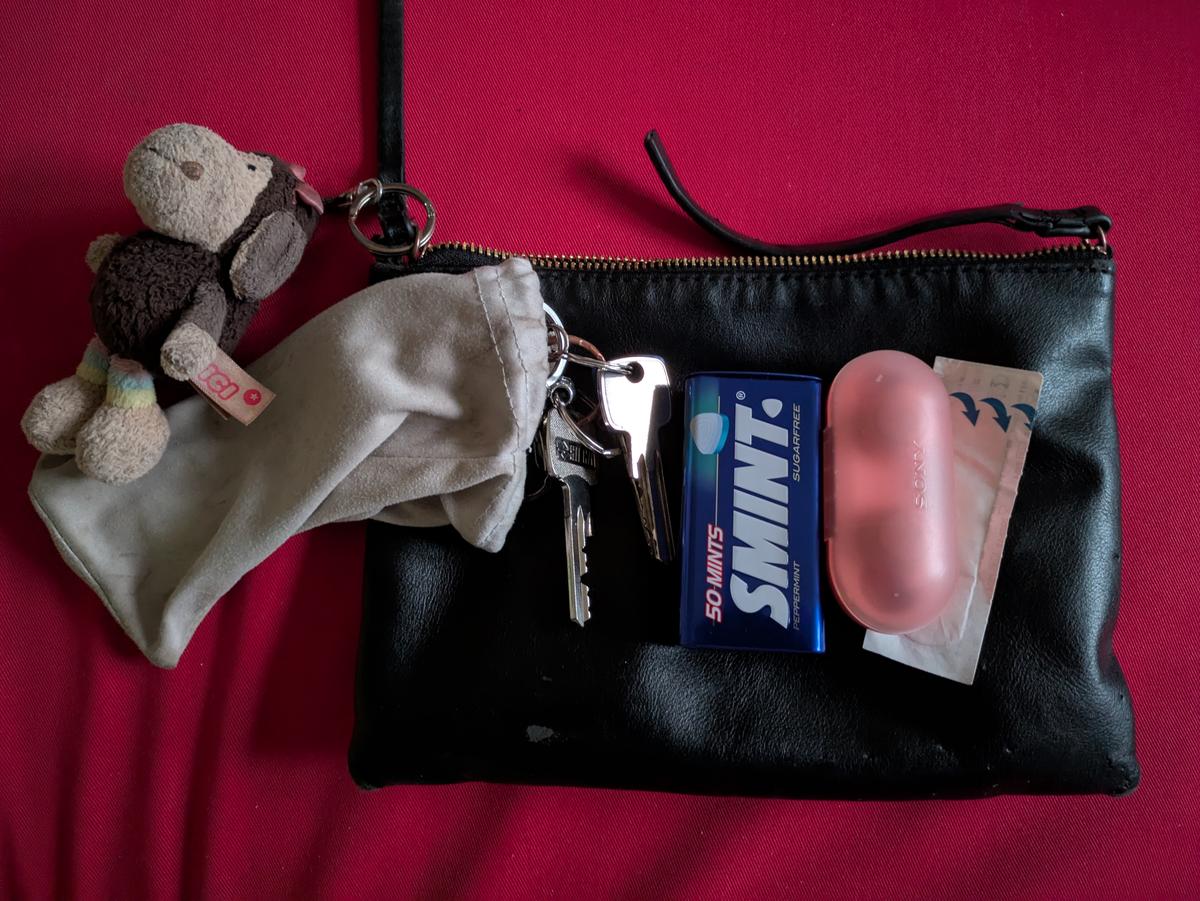 Zwart tasje : sleutels / contactlenzen