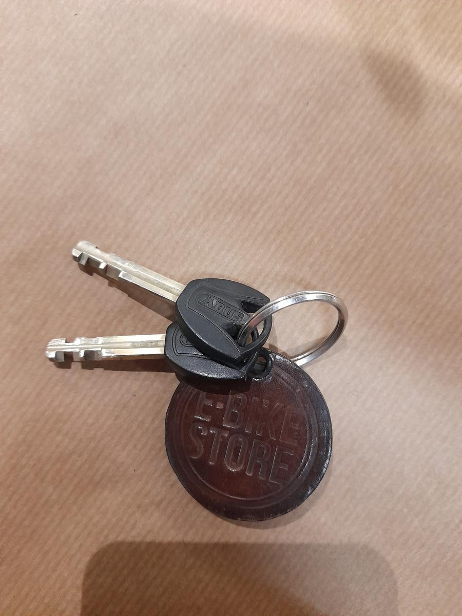 Sleutels electrische fiets. Bruin label.