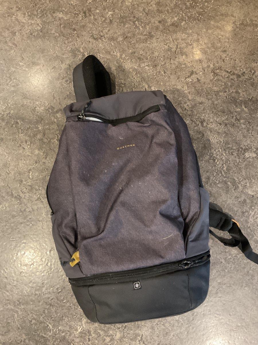 Plastic tas met (grote maat) sportschoenen.