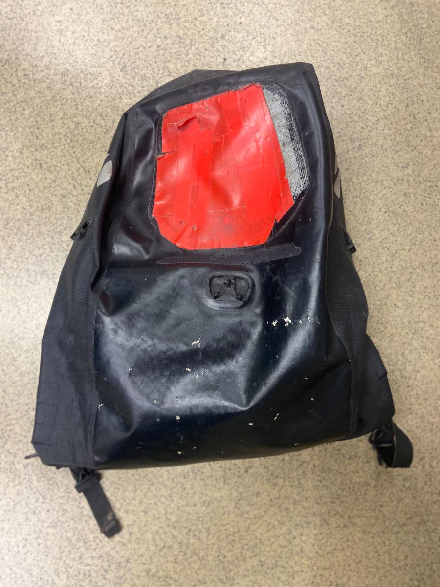 Backpack Svart ryggsäck med röd tejp, as reported by IKEA Linköping using iLost