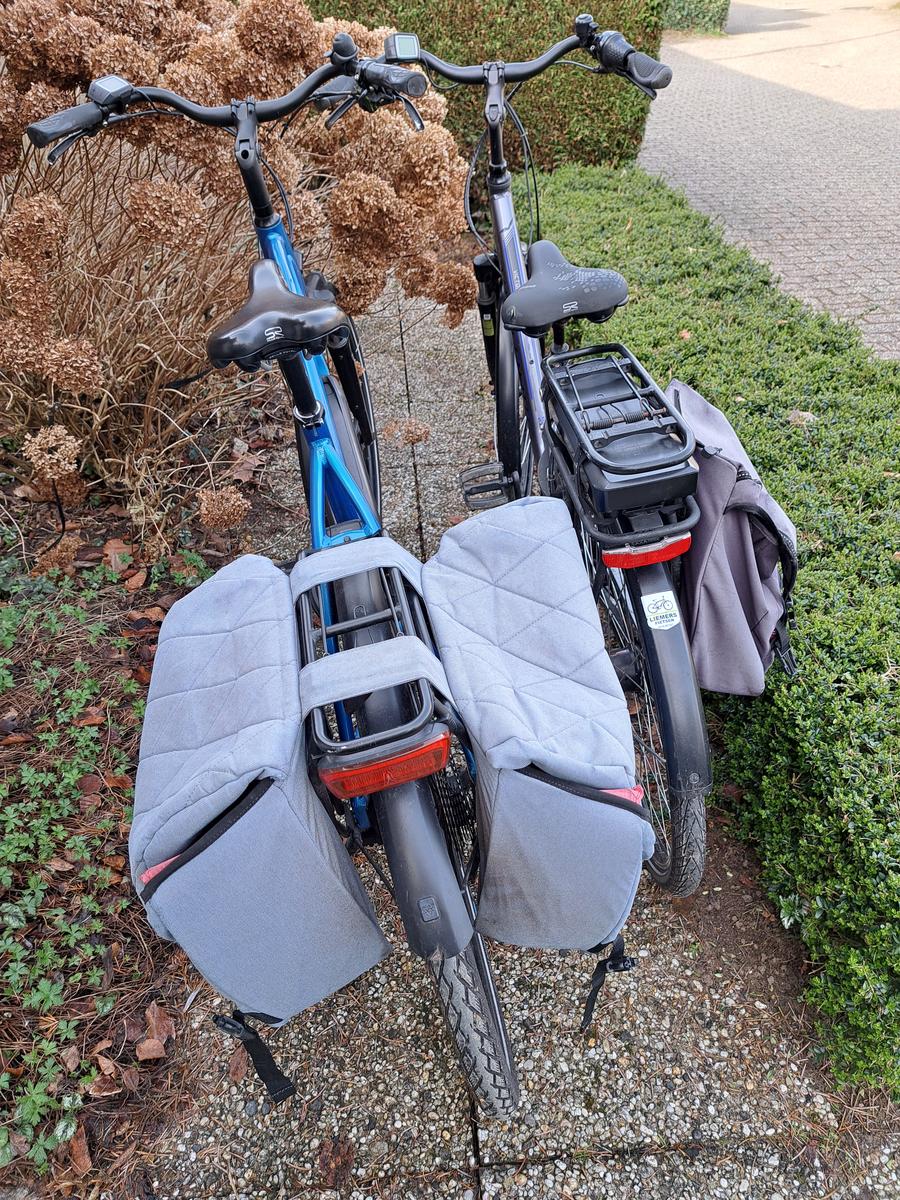 2 e- bikes met fiets tas