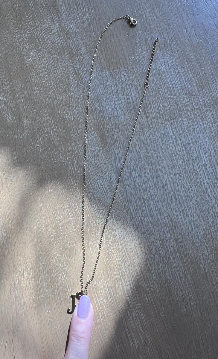 Een goudkleurige ketting met 2 initialen