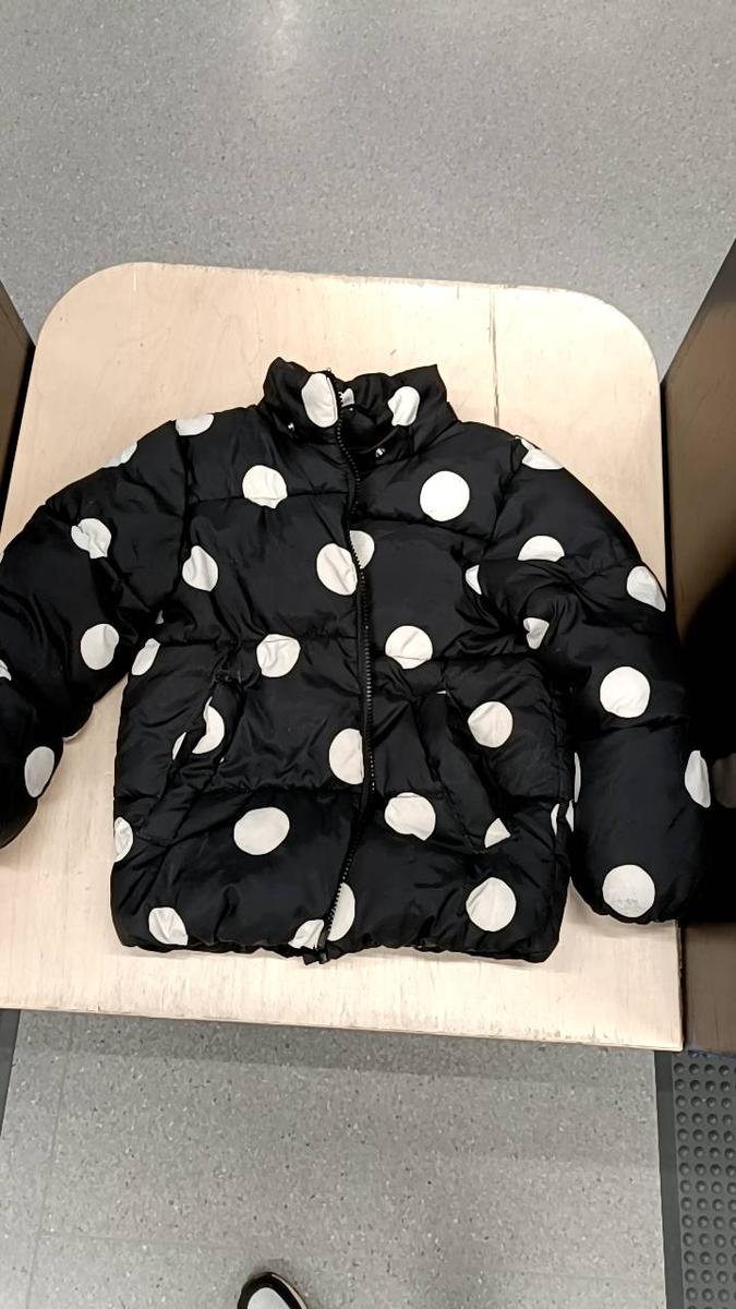 Gyermek dzseki Winterjasje zwart met stippen, amint azt IKEA Groningen az iLost segítségével jelentette.