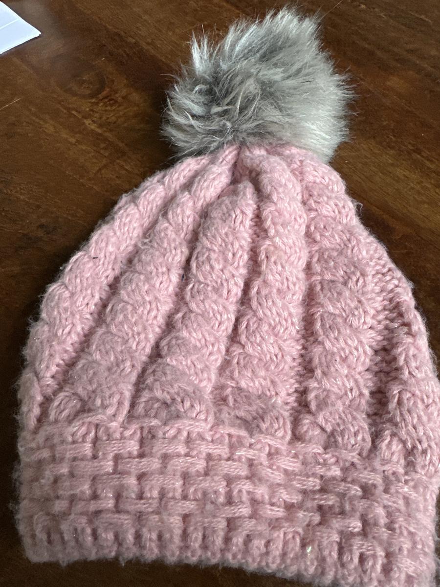 Roze muts met glitters en pompoen er op