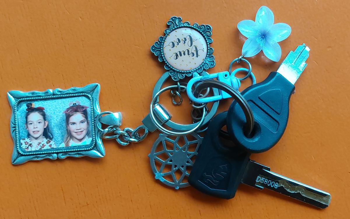 Fietssleutel aan bosje sleutelhangers met foto