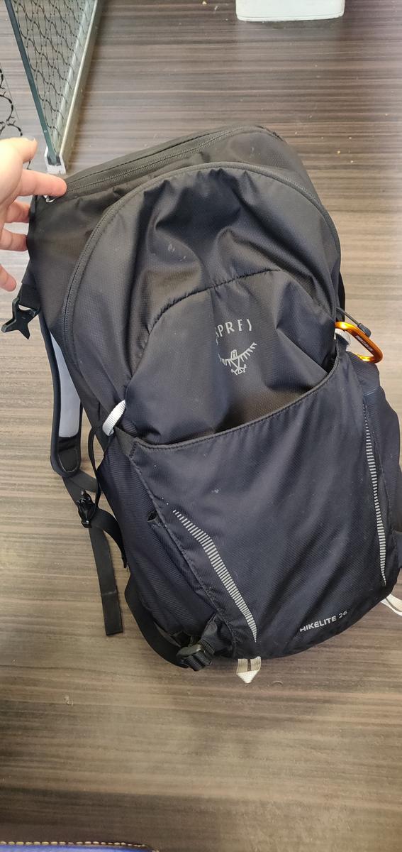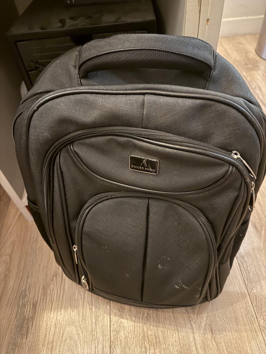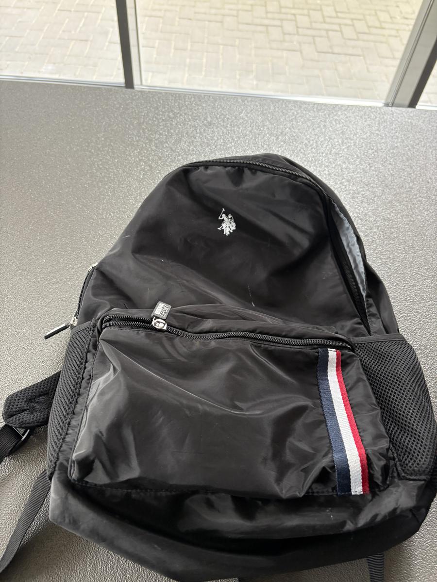 Black backpack with electronics inside