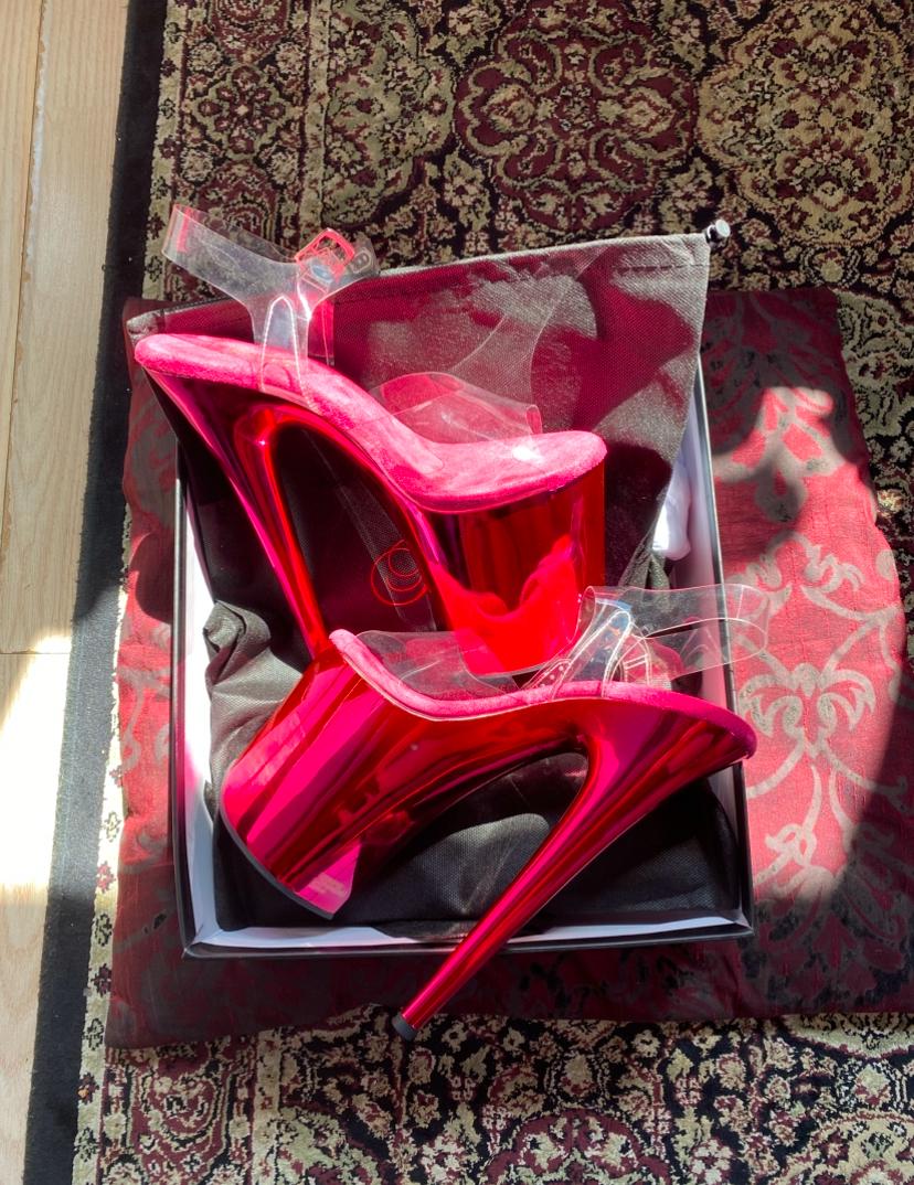 Pink tote bag with pink heels inside