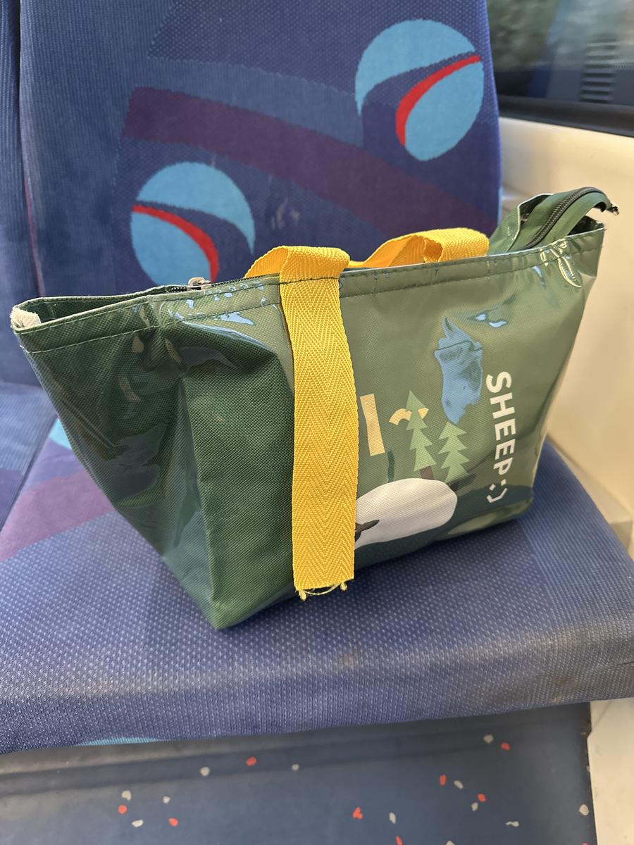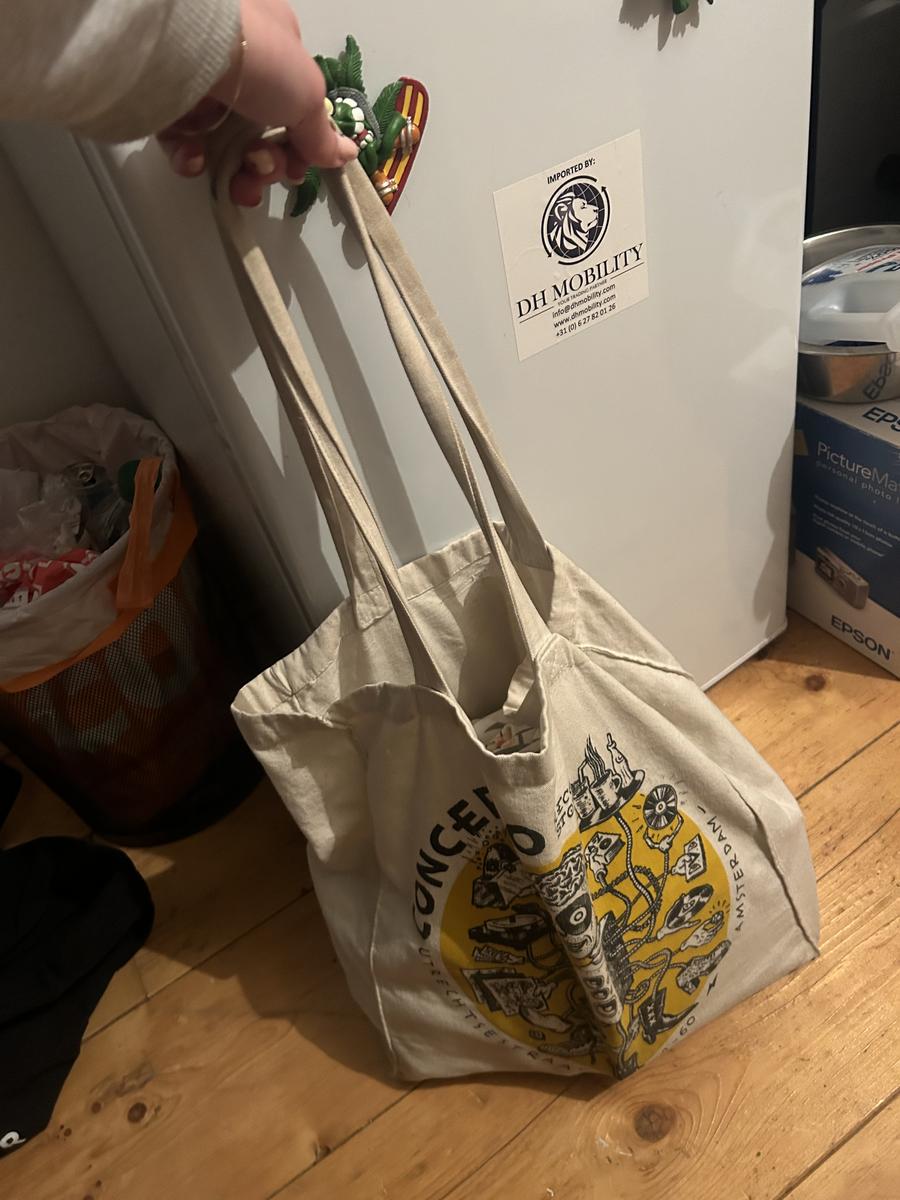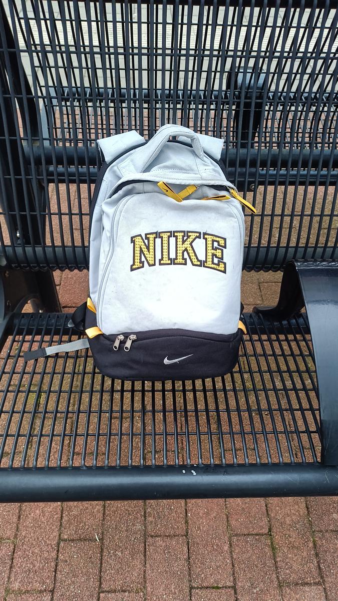 Grijs/beige tas met sportspullen