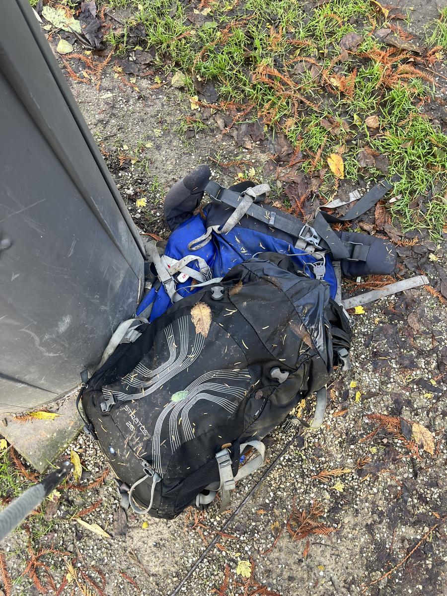 Blauwe rugzak met duure inhoud