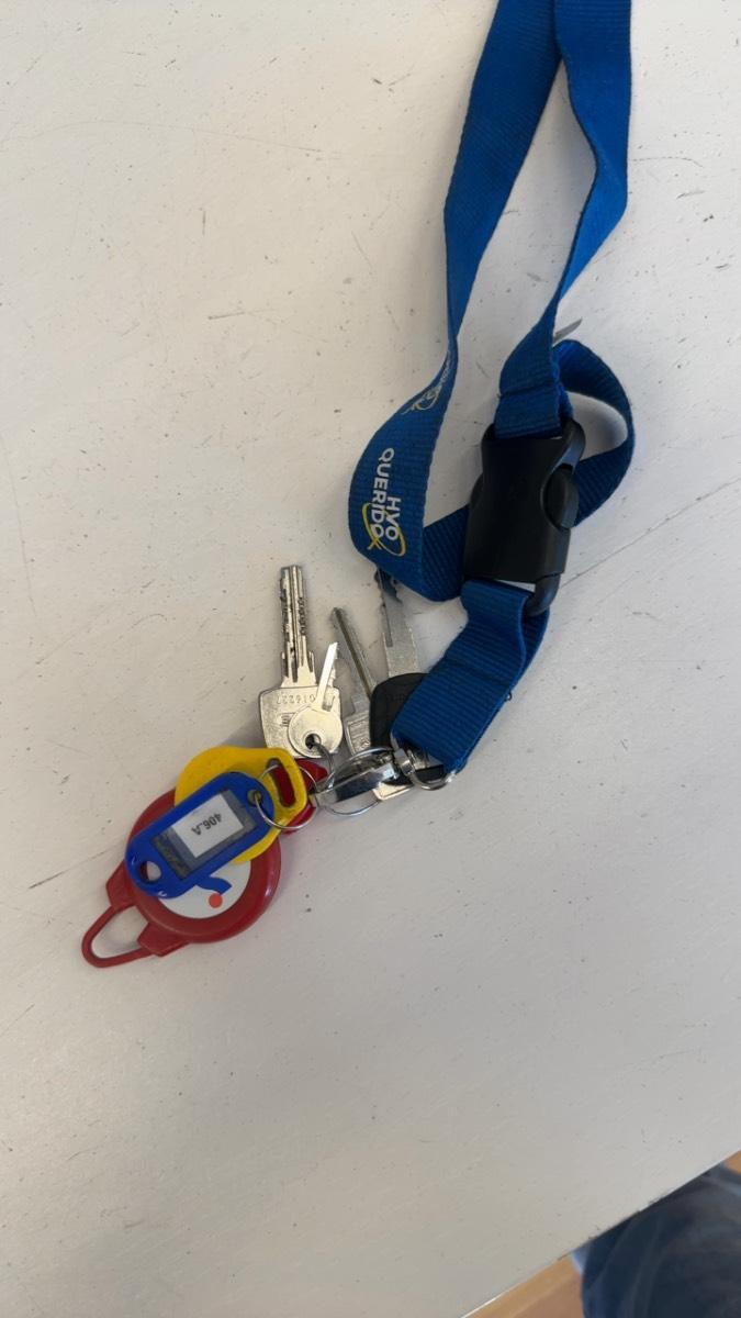 Keys, sunglasses and guess bag.