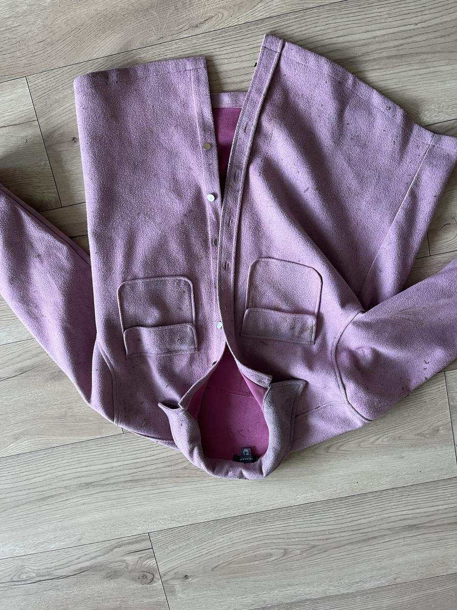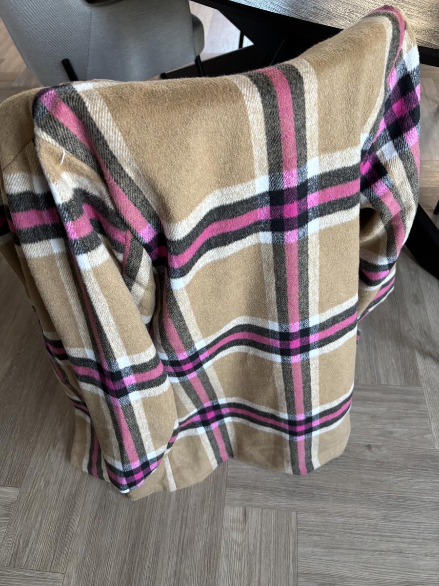 Beige jas met roze banen