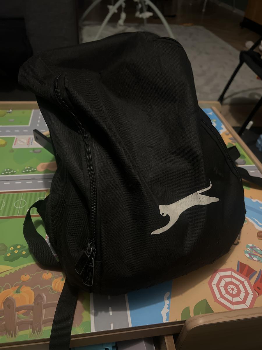 Zwarte rugzak met witte kat/panther erop