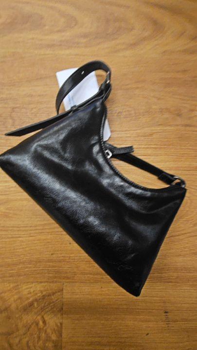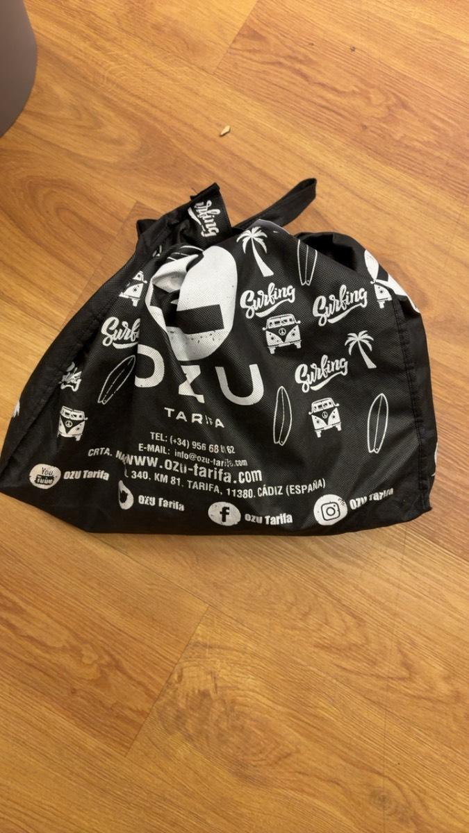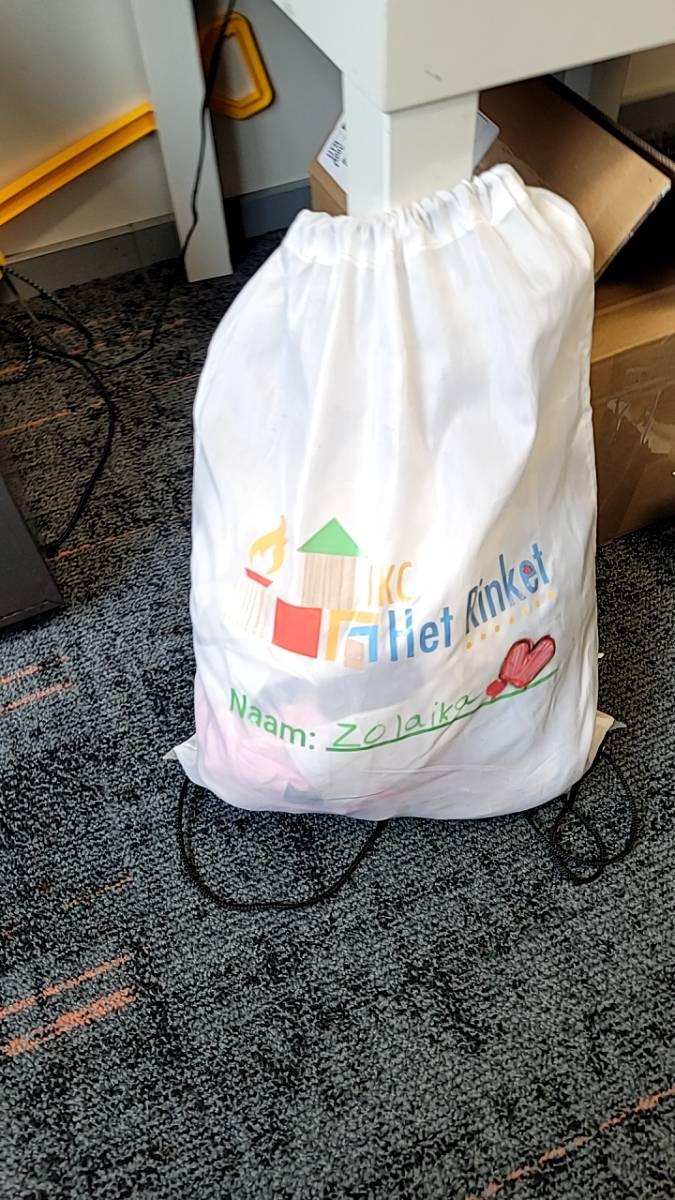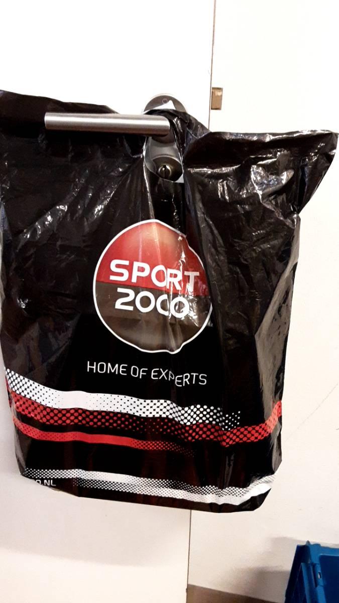 Plastic tas met (grote maat) sportschoenen.