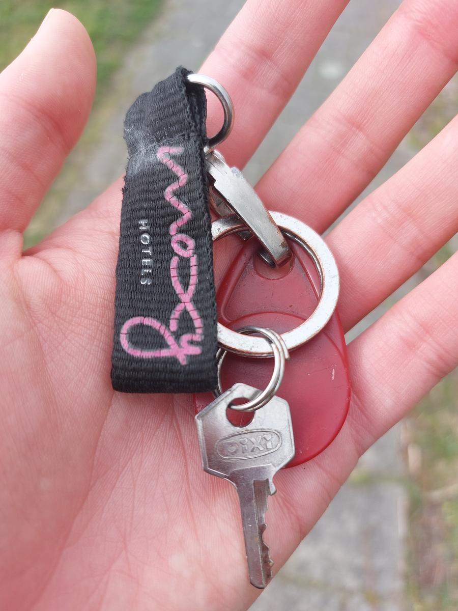 Sleutel met rode Tag en een hanger van Moxy Hotels