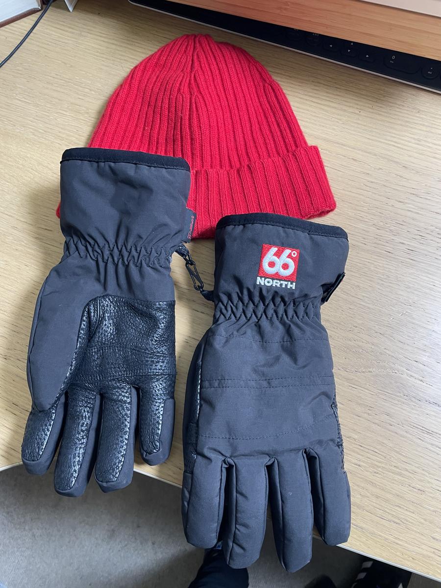 Rode muts van bekend merk en handschoenen