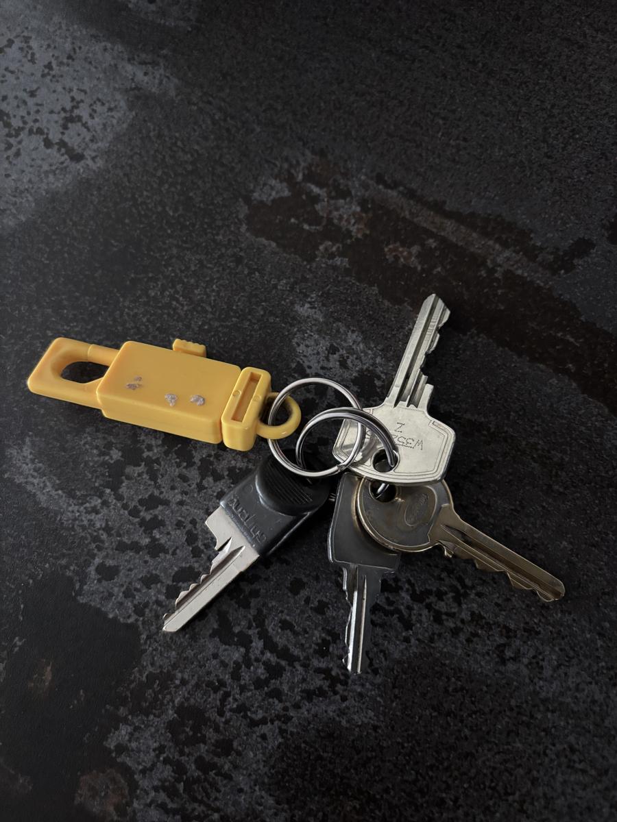 Two keys with green keychain
