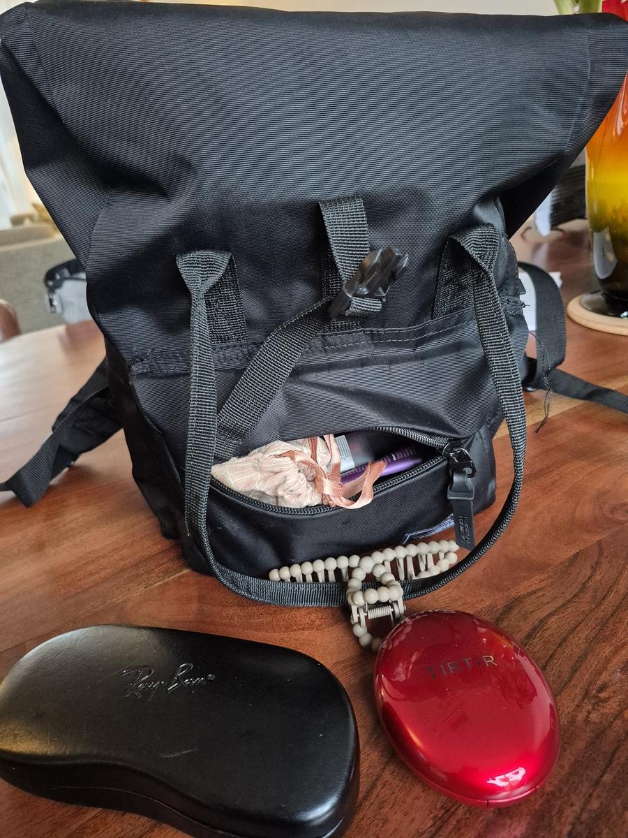 Zwarte rugzak met inhoud