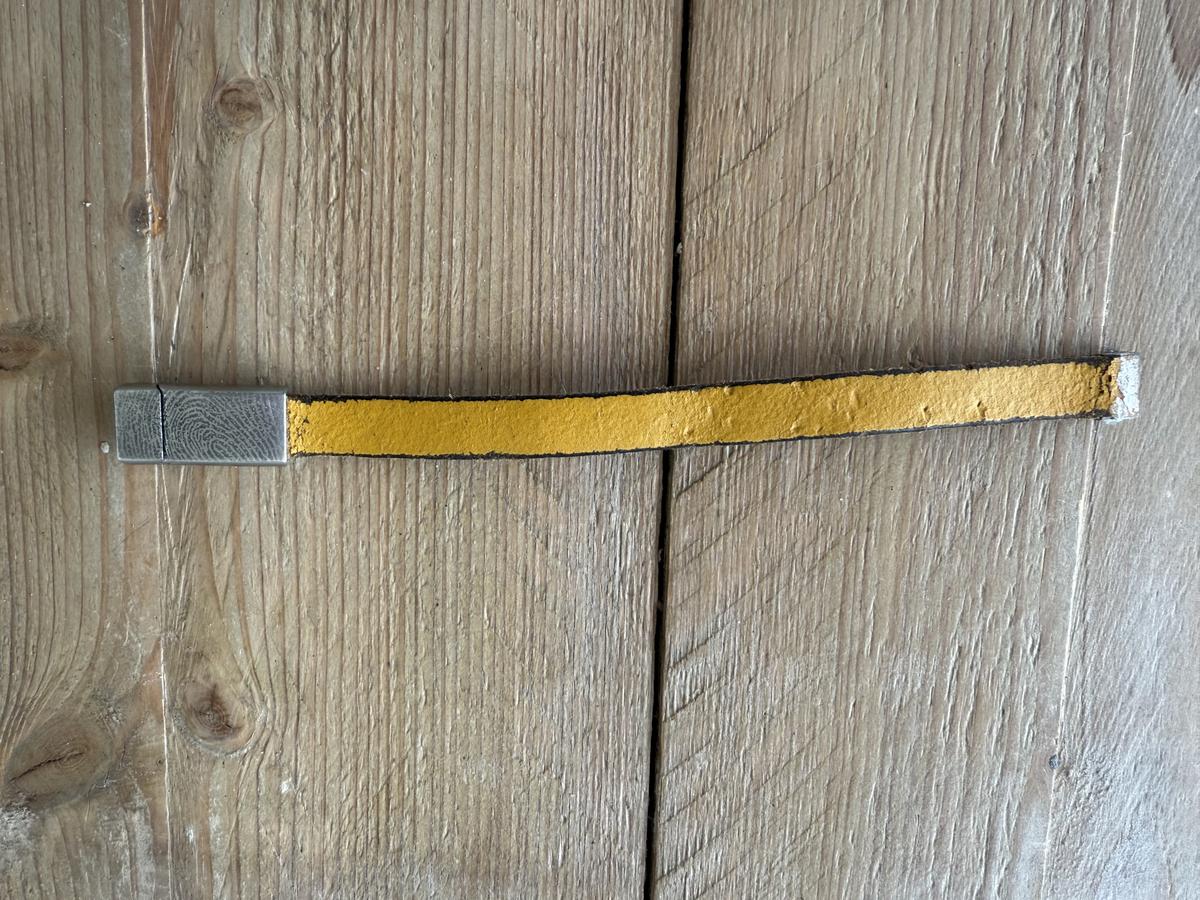 Gele leren armband met vingerafdruk