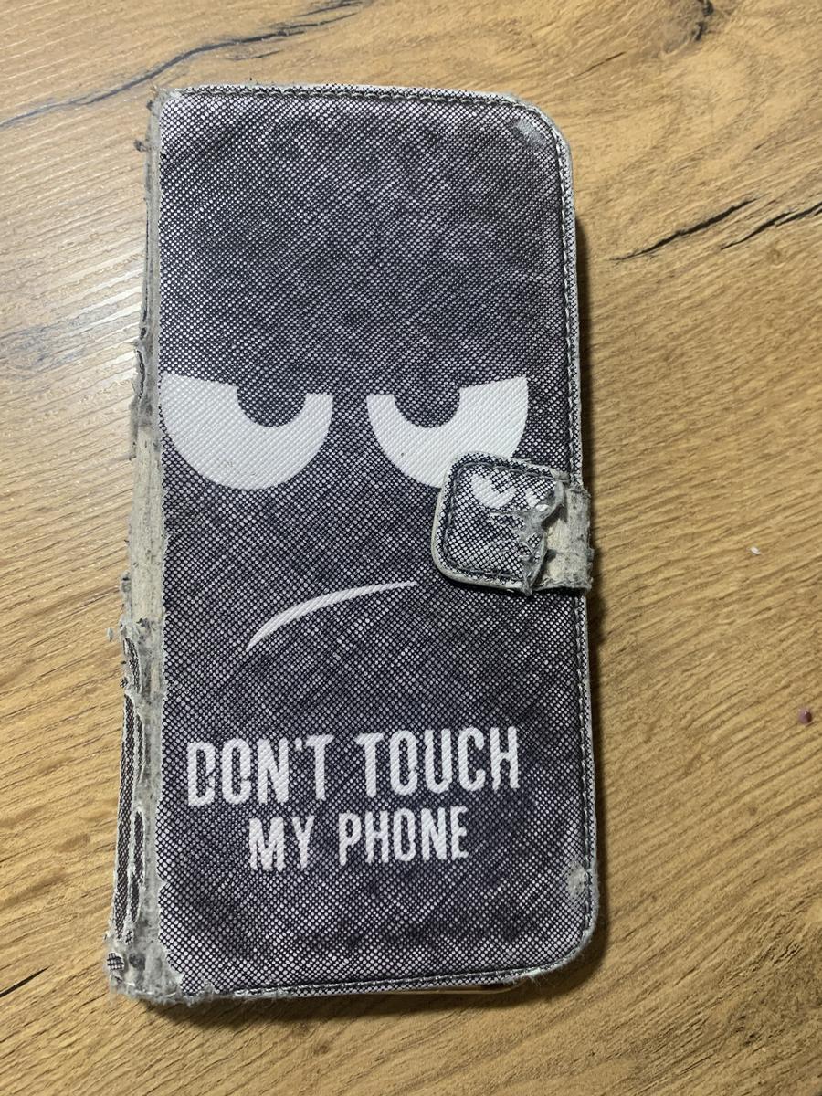 Paarse telefoon in zwart hoesje