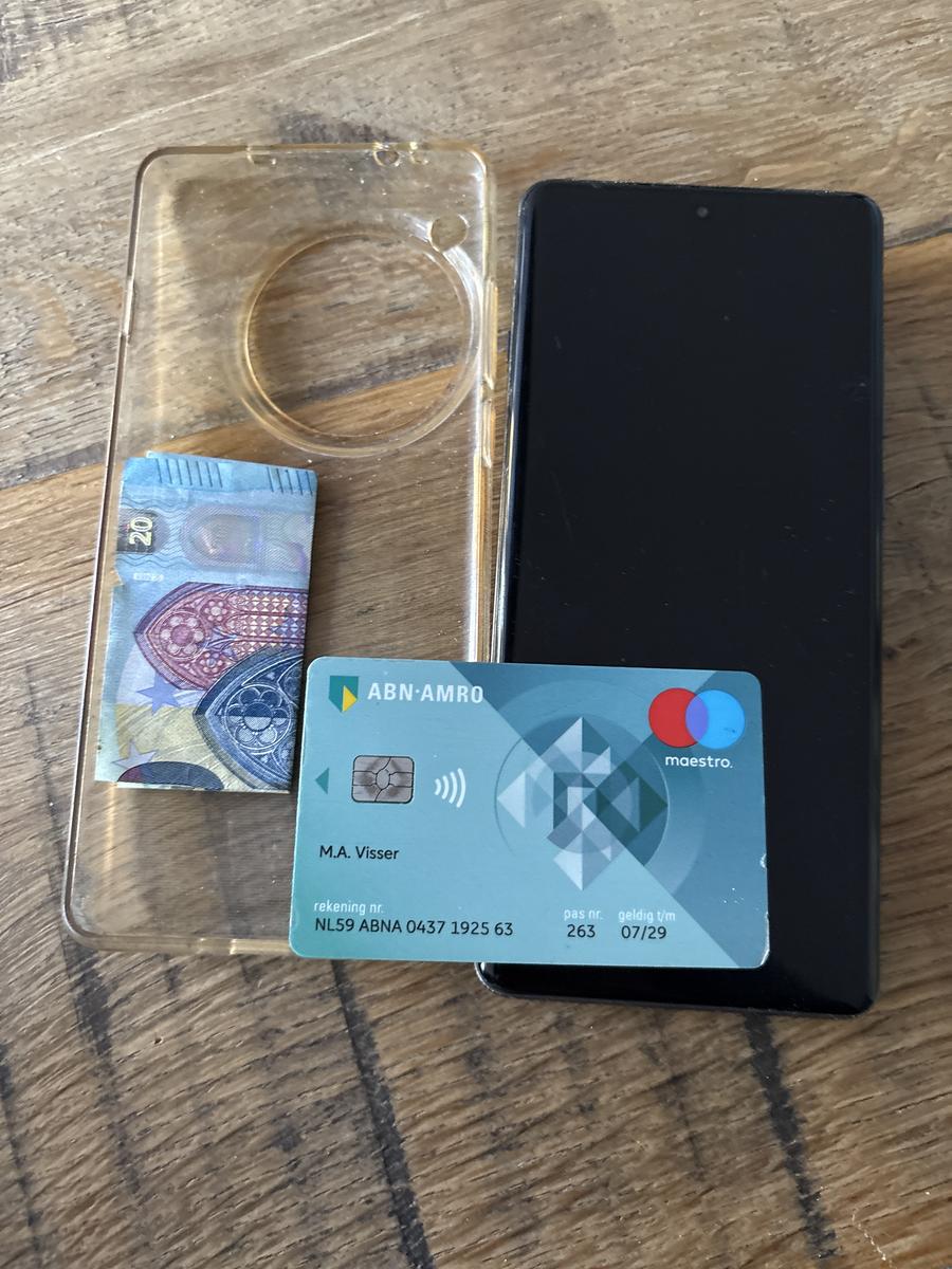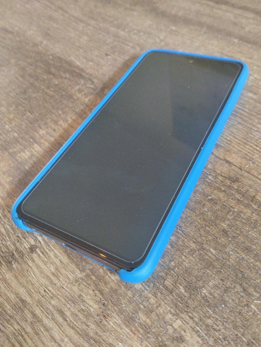 Samsung telefoon met blauw hoesje