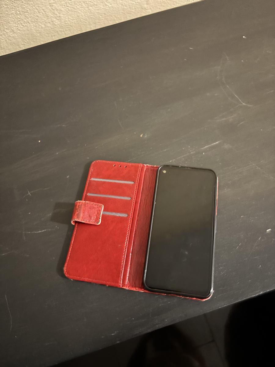 Zwarte mobiel met rode hoesje
