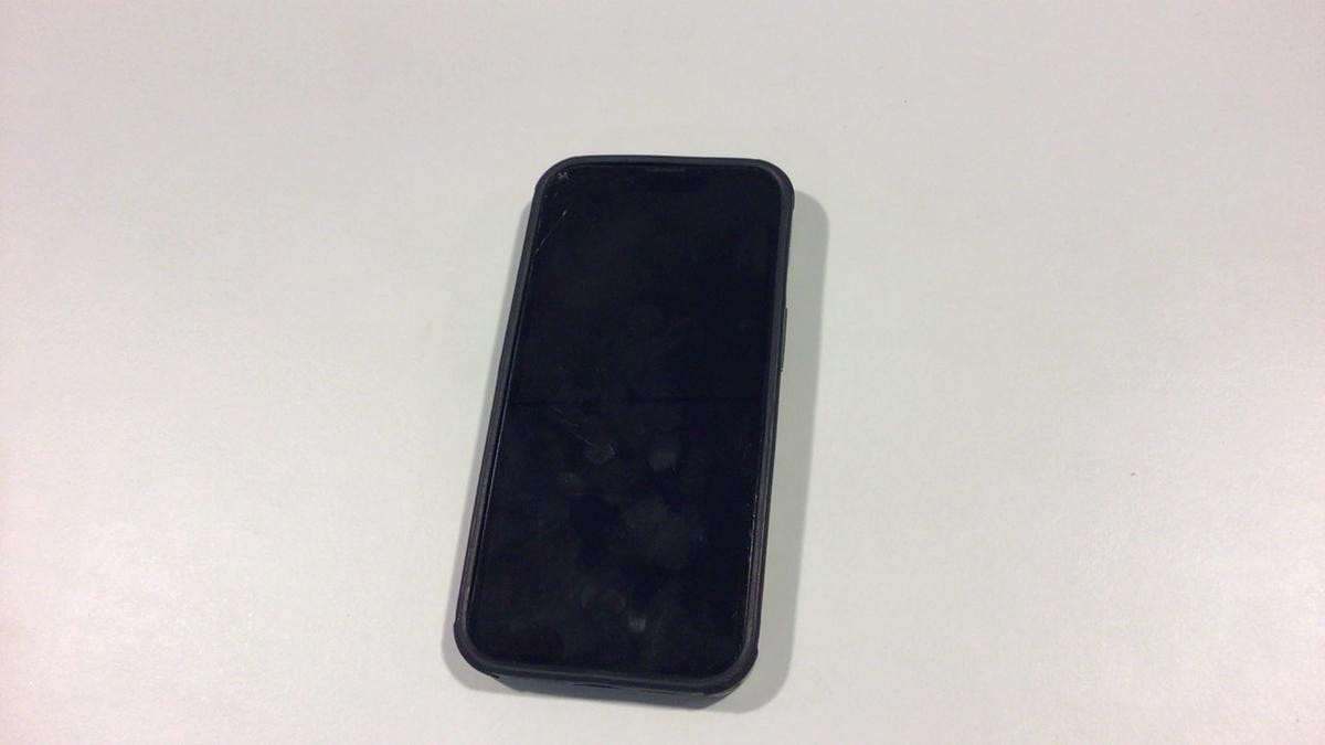 Groene iphone met zwart hoesje