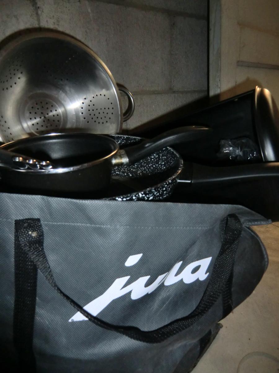 zware Jura-tas met keukenspullen