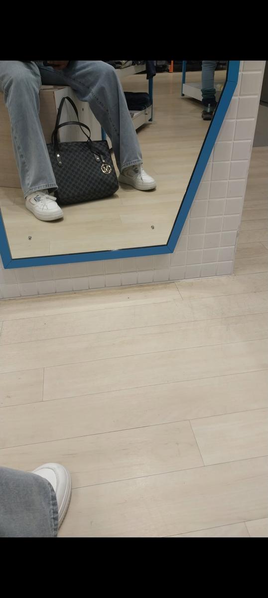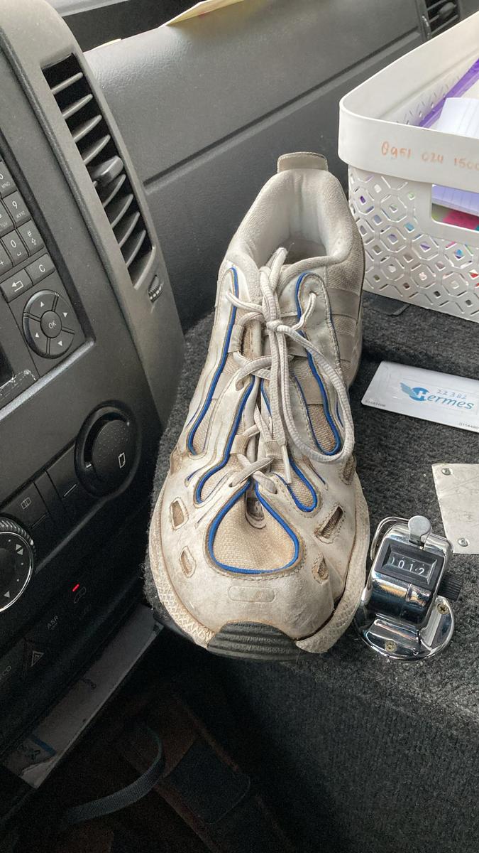 Plastic tas met (grote maat) sportschoenen.