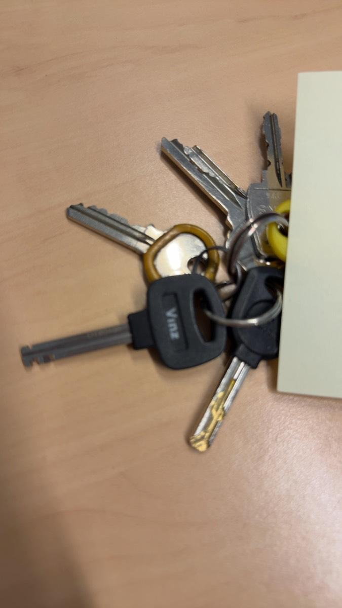 sleutel met blauw label + tekst