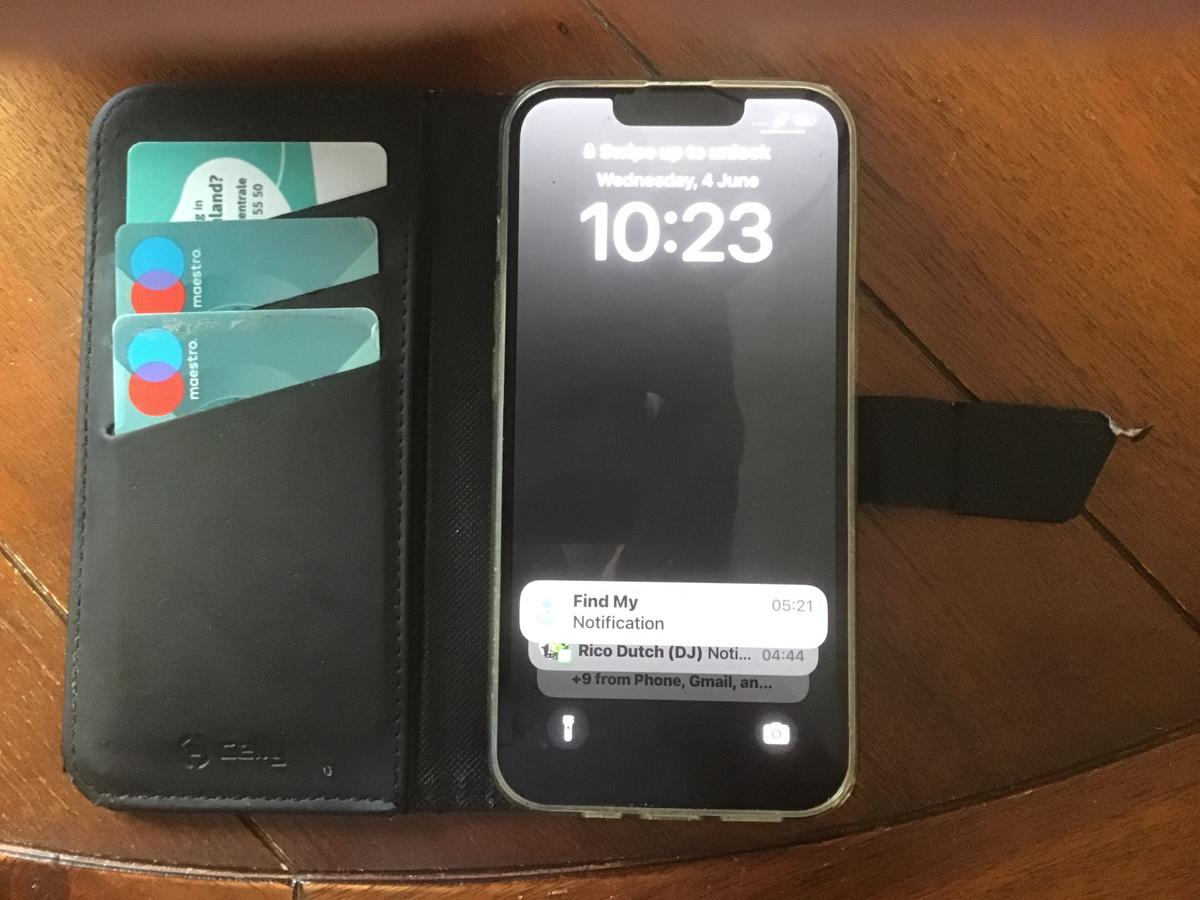 Telefoon met bankpassen rijbewijs etc