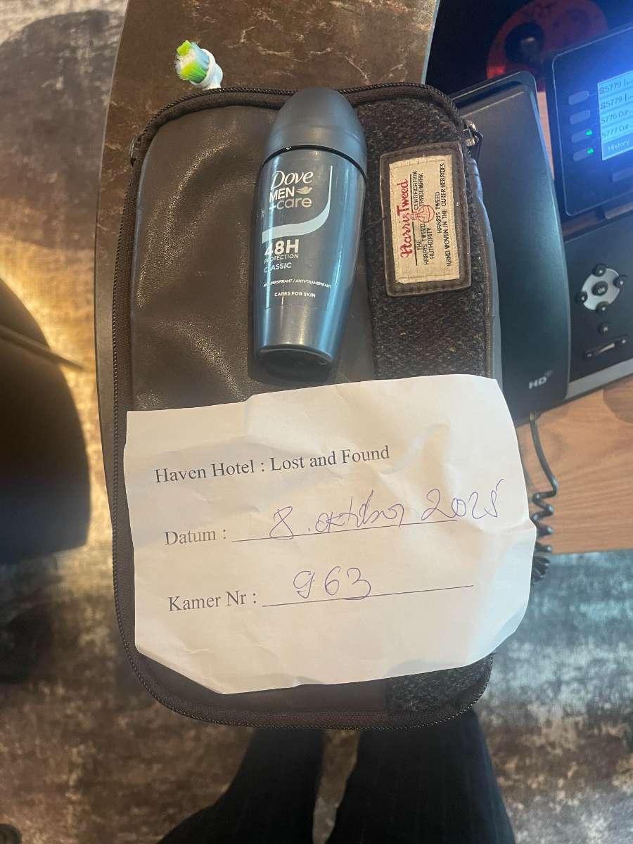 Du kommer under 7 dagar att få du meddelanden om upphittade föremål som matchar "rode tas" på Haven Hotel Rotterdam.