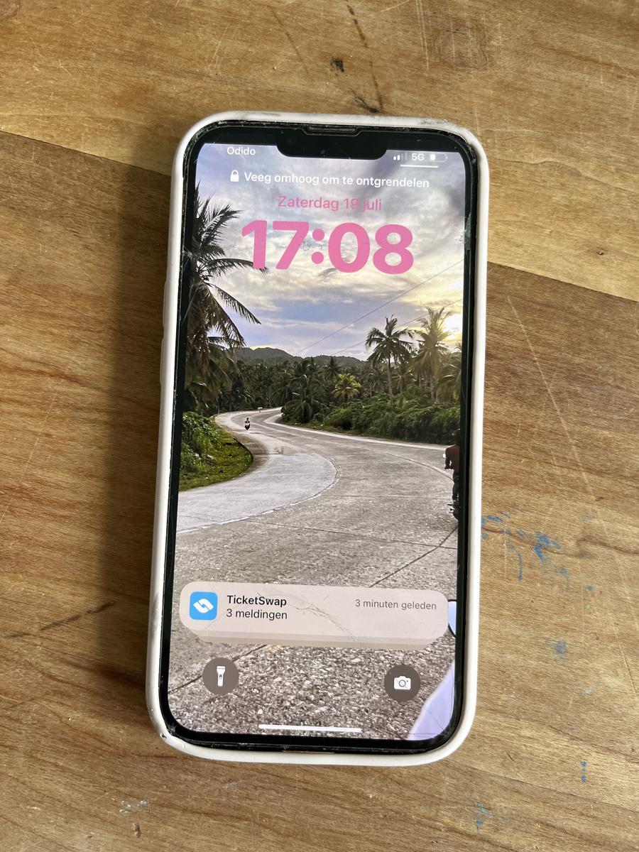 Iphone wit in blauwe hoes