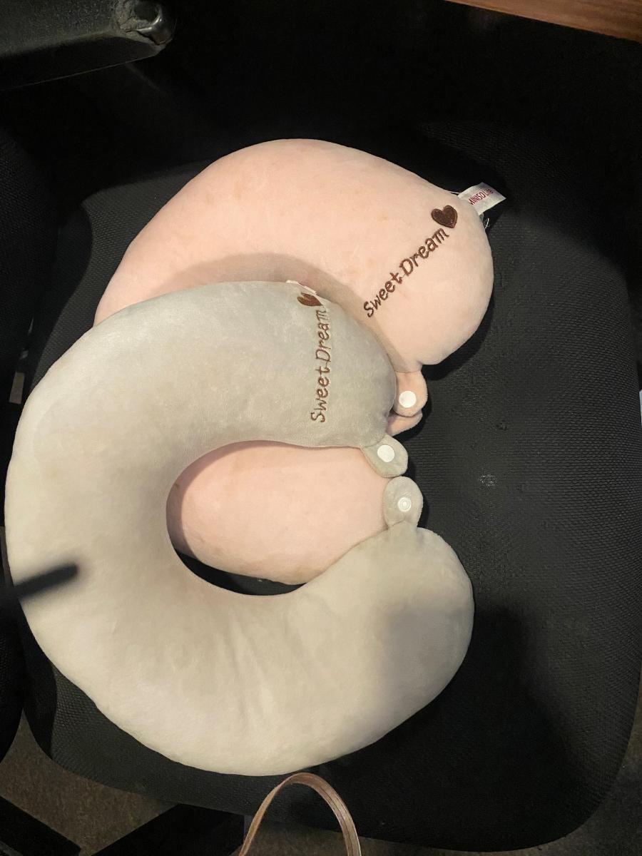 Grey and pink travel pillows